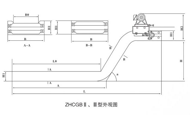 1、根據(jù)安裝空間的大小確定刮板排屑機的高度H2(≥140mm),長度L0,